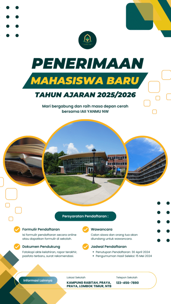 Pendaftaran Mahasiswa Baru Tahun Akademik 2026/2027 telah dibuka! IAII YANMU NW mengundang lulusan SMA/SMK/MA/Sederajat untuk bergabung dan menjadi generasi yang berintegritas, berkarakter, dan unggul di bidangnya.